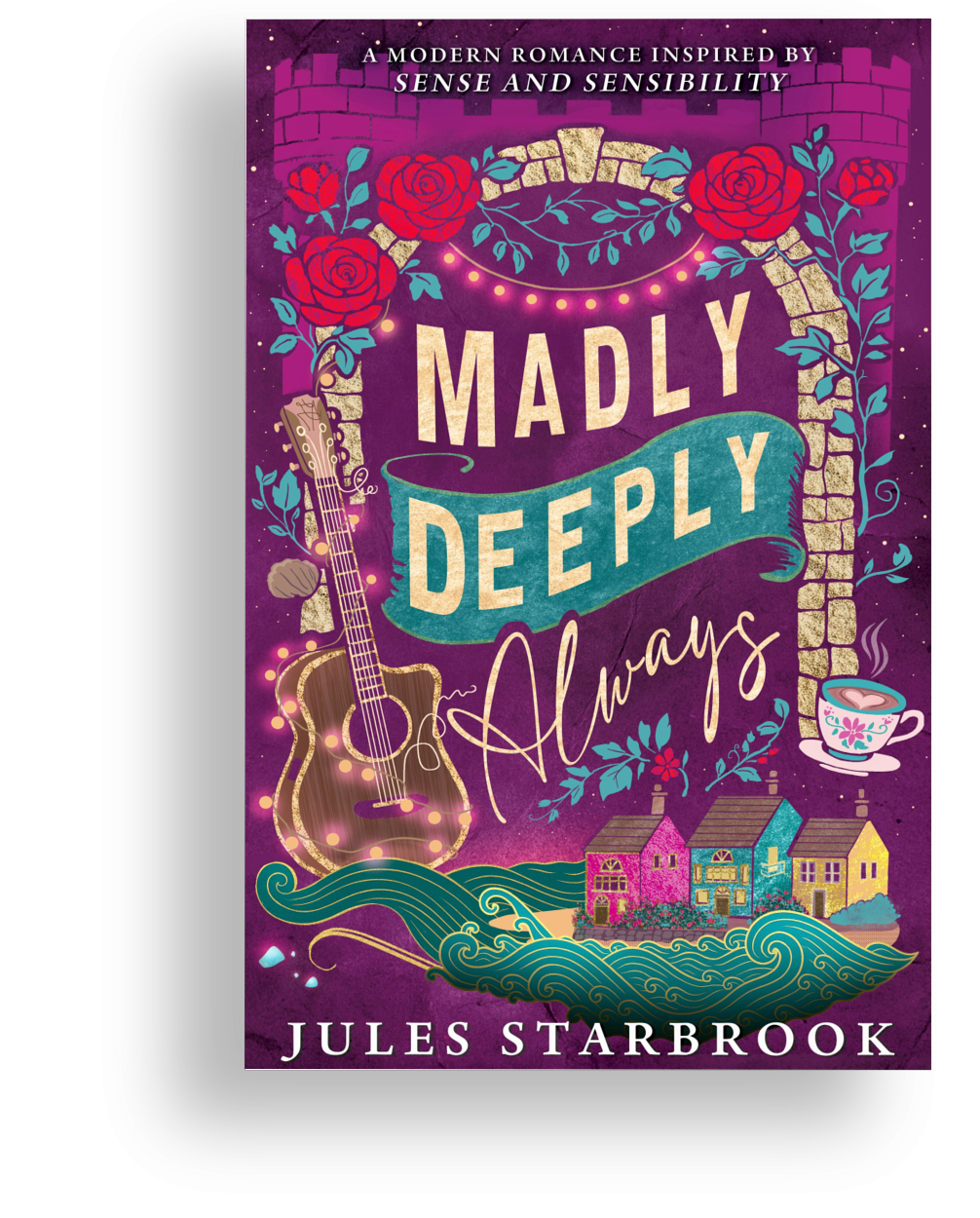 Inspired by Sense and Sensibility’s Colonel Brandon and Marianne, Madly Deeply Always is a modern coastal romance with slow-burn tension, coffeehouse vibes, the melancholy heart of a BBC period drama, and just a hint of Harry Potter nostalgia.